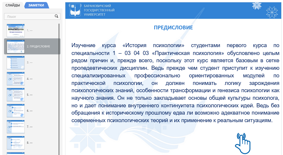 Полная версия ЭУМК доступна пользователям сети БарГУ в Хранилище электронных ресурсов https://erstorage.barsu.by/